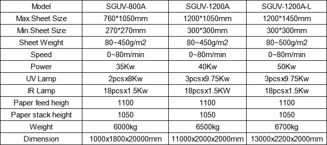 4 : La parte UV adotta 8-La sorgente di luce elettronica regolabile da 12kW, che hanotevolmente migliorato le prestazioni di sicurezza rispetto alla tradizionale sorgente di luce di tensione. La sorgente luminosa può regolare automaticamente la luminosità come il cambio della velocità di esecuzione della macchina, che può essere modificata da 30% a 100%. Pertanto il consumo medio di energia viene salvato di più di 30%.